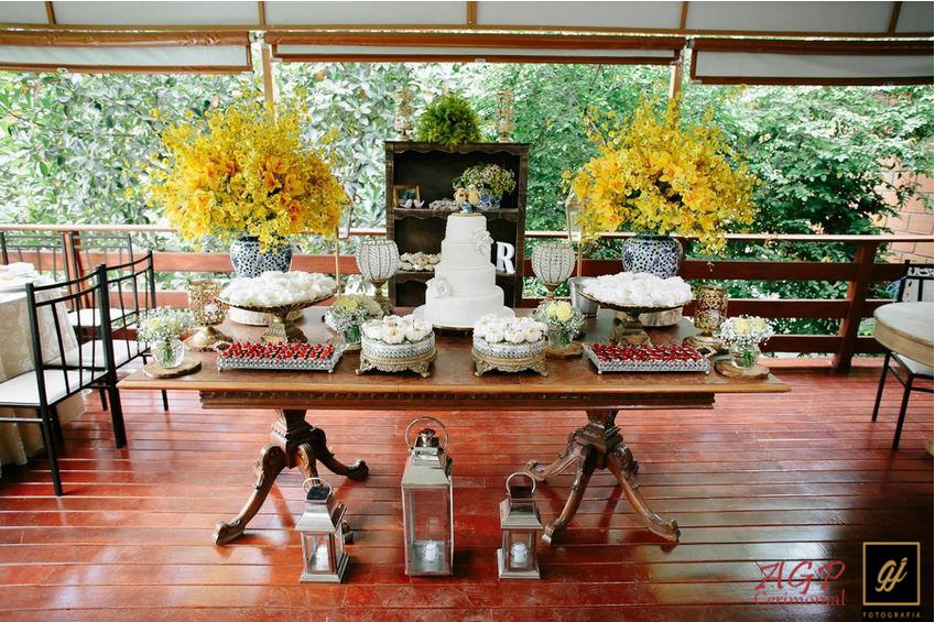 Mesa de Bolo com flores brancas